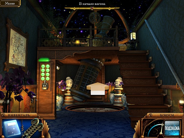 История в поезде до Стамбула, где живет профессор, потрясла Эпифанию до глубины души. В вагоне раздались выстрелы. Девушка бросилась на помощь, но раненый человек нагрубил ей и скрылся. Обычно пострадавшие так себя не ведут! Помогите Эпифании разобраться, в чем дело. Осмотрите вагон, найдите все предметы по списку, некоторые из них очень пригодятся позже, а пока пусть полежат в инвентаре. Используйте лупу, чтобы поближе рассмотреть заинтересовавшие вас вещи. А в минуты замешательства не забывайте о подсказке, через некоторое время она снова станет активной.