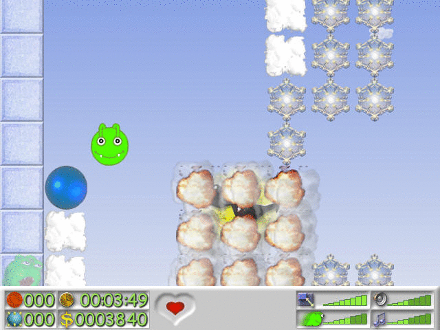 Кроме капель, путь Мямле преграждают снежинки, которые никуда не падают и не двигаются. Их придется обходить или просто взрывать. Для саперных работ у Мямли есть целый арсенал: бомбы, мины и динамитные шашки. Бомбы нужно сбрасывать с высоты, а динамитные шашки — взрывать с пульта дистанционного управления. Интереснее всего действуют мины: сначала Мямля глотает их и повсюду носит с собой, а в нужный момент — выплевывает и взрывает.