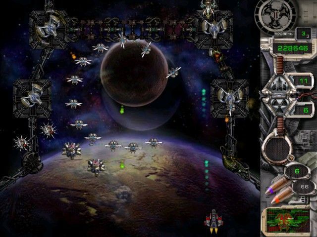 В конце каждого из 9 игровых этапов вам предстоит битва с мощным бронированным космическим крейсером, на котором установлено самое разнообразное вооружение, от плазменных пушек и ракет до смертельно опасных импульсных лазеров.