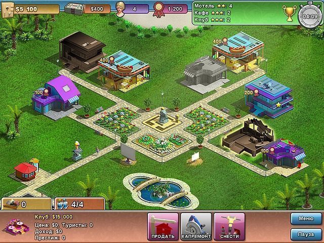 Вам придется самостоятельно планировать застройку все новых площадок, закупку материалов и обучение дополнительных рабочих. Ремонтируйте или сносите ветхие здания, размещайте вдоль дорог рекламные щиты и сдавайте их в аренду — это приносит неплохой доход. Не жалейте денег на улучшение своих владений и обеспечьте всем гостям незабываемый отдых!