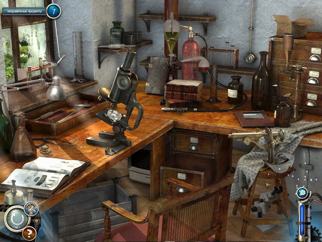Чтобы пройти каждый уровень, нужно отыскать в локации все предметы по списку и сконструировать очередное изобретение — двигатель внутреннего сгорания, динамо-машину, кинопроектор. Иногда предметы спрятаны в сейфе, закрытом ящике, старом холодильнике. Разгадывайте головоломки, решайте задачки на сообразительность — и вы обязательно сумеете до них добраться! Обращайте внимание на изменения курсора. Если он превращается в лупу, значит, эту область экрана можно приблизить и рассмотреть повнимательнее.