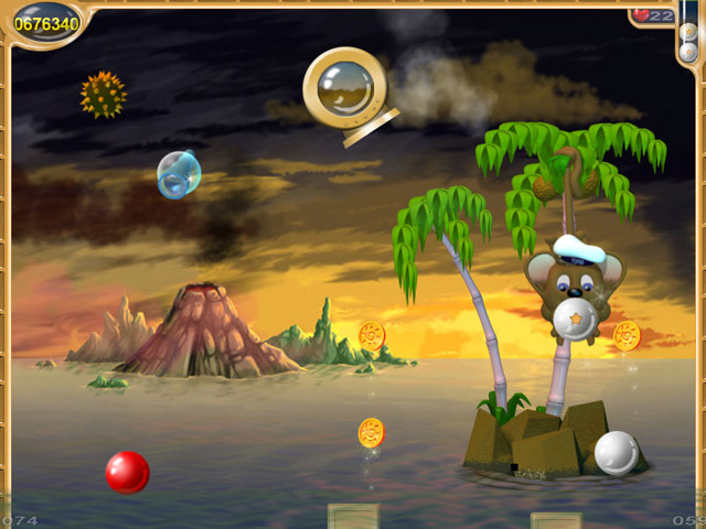 Иногда среди цветастых сфер вы увидите изображения дельфина и подзорной трубы. Это бонусы, которые помогут вам не потерять мяч и успешно закончить уровень. Труба подскажет, куда полетит мяч, отскочив от первого препятствия, а дельфин спасет шарик из холодных волн. К сожалению, время действия бонусов не бесконечно, поэтому важно успеть поразить наиболее труднодоступные цели.