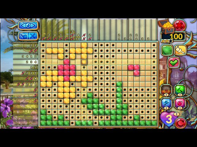 Всевозможные рыбки, птички и домики появятся на игровом поле, если вы правильно соотнесете цифры, указанные в столбцах и строках. Если вы не угадаете клетку, которая должна быть закрашена цветом, то лишитесь одной из трех жизней. Однако вернуть потерянные жизни вы сможете, если правильно ответите на вопрос викторины. Но все же не стоит бездумно открывать любые плитки, ведь в определенный момент восстановленные жизни пропадут безвозвратно, и уровень придется начинать заново.