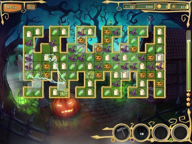 Скорее приступайте к прохождению многочисленных уровней-головоломок. Переставляйте забавные фигурки в горизонтальные и вертикальные линии. Выстраивая по три в ряд, вы будете устранять их с игрового поля и добираться до серебряных и золотых плиток, а также сможете получать монетки. Золото пригодится для покупки украшений, а монетки — в магазине бонусов и артефактов, которые помогут вам справляться со все более сложными задачами. Летучие мыши и молотки, молнии и бомбы станут вашими надежными инструментами. На каждом уровне вас будет поджидать что-то новенькое. Кое-кто будет настойчиво заглядывать к вам на огонек в поисках сладостей, а фигурки окажутся то запертыми на замок, то спрячутся за деревянными ящиками, то заблокируются каменными плитами. Но чем сложнее заработать, тем приятнее видеть, как дом украшается гирляндами, головами-тыквами, деревьями... и совершенству нет предела!