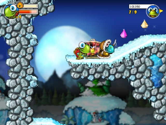 Каждый из них зорко охраняет один из главарей монстров. Прежде чем сразиться с ним, вам придется пробиться к нему, освобождая по дороге всех черепашек. Они томятся в клетках, каждую из которых стережет свой охранник. Голыми руками с врагом не справиться. Поэтому действуйте хитростью: прыгайте на противника сверху чтобы оглушить его, после чего монстра можно выкинуть с уровня. За вашими приключениями будет наблюдать Шаман. Время от времени он сможет помогать Туртиксу, обучая его прыжкам в высоту и боевой магии.
