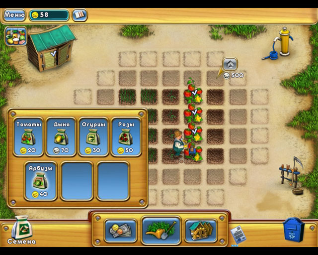 Аркадная игра с элементами экономической стратегии, в которой вам необходимо превратить заброшенный огород в процветающую и богатую ферму. Для развития хозяйства потребуются наличные. Чтобы заработать их, возделывайте землю и выращивайте самые разные растения — от огурцов и томатов, до благоухающих роз, арбузов или даже ананасов.