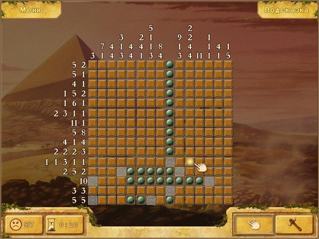 Правила в игре простые: над каждым столбцом и слева от каждого ряда клеток проставлены числа, указывающие, сколько там спрятано глобусов. Если у вас ряд из пяти клеток и слева от него стоит цифра 5 — смело открывайте все глобусы курсором-рукой. Если даны несколько цифр — скажем, 1 и 2, значит, в ряду два блока из одного и двух глобусов, расположенных именно в таком порядке, а между ними — по крайней мере одна пустая клетка, которую нужно разбить курсором-молотком.