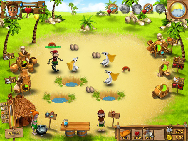 Потрясающая многоуровневая игра, в которой каждый может почувствовать себя островитянином, фермером и волшебником. Станьте повелителем погоды и распоряжайтесь ей в своих интересах. Вызывайте порывы ветра, собирайте сброшенные им кокосы и изготавливайте кокосовое масло. Повелевайте дождем и поите дождевой водой животных — они помогут вам собрать необходимые для выживания на острове предметы. Используйте яйца чаек и мясо диких свиней для оживляющих отваров, употребление которых позволит вам трезво оценивать происходящее.