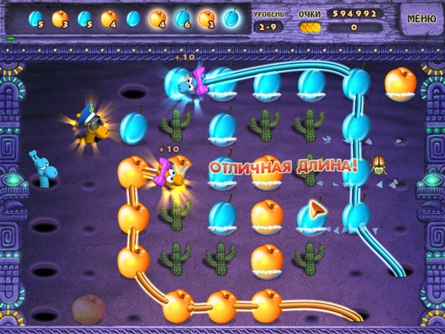 Ваша задача — протягивать червячков к плодам, не давая им пересекаться между собой. Помните, что червячки могут есть только плоды одного с ними цвета. Но есть и исключения из этого правила, с которыми вы быстро разберетесь.