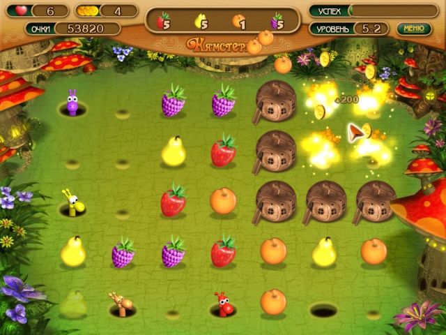 Чтобы пройти уровень, нямстеры должны съесть определенное в задании количество фруктов. Как только нямстер показывается из норки, вам нужно хватать его и тащить к ближайшему фрукту такого же цвета. Будьте внимательны: нямстеры очень впечатлительные, и если им по дороге попадается какое-нибудь препятствие (фрукт неправильного цвета, другой нямстер, жук-заморозчик или бабочка), то они сразу же прячутся обратно в норку.