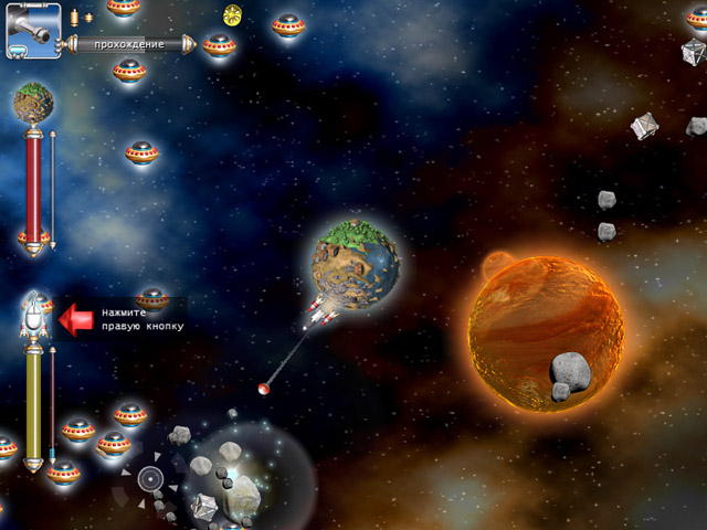 Эта красочная игра понравится всем поклонникам динамичных космических стрелялок. Впереди вас ждет семьдесят увлекательных уровней: пройдите их, чтобы превратить в груду безобидных обломков флагман эскадры инопланетян и вернуть мир всей вселенной!