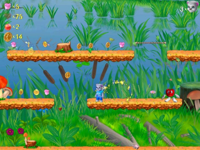Посмотреть скриншот Любовь ТатошкиОднажды Татошка работал в огороде, и вдруг вспомнил, что у них с возлюбленной Фиалочкой сегодня юбилей их свадьбы. И он обещал ей собрать самый красивый букет цветов. И он отправился на поиски. В этой игре вам предстоит помочь Татошке в его нелегком поиске. Ведь чтобы собрать самый красивый букет для любимой, нужно обойти множество мест, и встретиться с коварными овощами и фруктами, которые мешают Татошке в его благородном деле. Так же необходимо собирать монетки, разбросанные на пути. Как только вы соберете необходимое количество монет, вы сможете улучшить какое либо качество главного героя. Эта красочная игра предназначена в первую очередь для самых маленьких игроков, которым, безусловно, понравится этот замечательный мир.