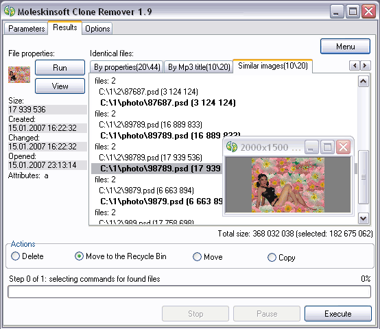 1. Now it is possible to find similar images. 2. The program used to freeze a bit while searching archives (RAR, ZIP). Fixed.