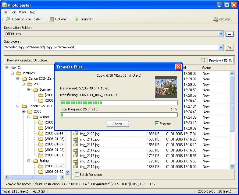 Мощное и удобное приложение для упорядочения архива с цифровыми изображениями. В комплект программы входят наиболее популярные у фотографов шаблоны для упорядочения папок с изображениями + редактор собственных шаблонов. Возможен предварительный просмотр ожидаемой файловой структуры не дожидаясь операции копирования + менеджер откатов. Помимо основной функции: упорядочения фотографий в логичную, удобную для поиска структуру папок, программа содержит ряд незаменимых для фотографа функций: - Шаблоны для переименованияфайлов, исключающие появление дубликатов и включающие в имя файла некоторую полезную информацию о снимке, например: дату и краткое название камеры: 2005-01-31_12-98-12_350D.jpg; - Автозаполнение IPTC полей, например: для указания копирайтов, описания, и ключевых слов; - Автоматический поворот JPEG изображений без потери качества; - Разбивка файлов по типам: RAW файлы могут скидываться в отдельную папку; - Коррекция разрешения JPEG файлов; - Коррекция даты создания и изменения файлов согласно EXIF дате; - Набор готовых токенов + редактор пользовательских токенов (время года, типы файлов, имя проекта, автор и т.д.); - Система обнаружения дубликатов имен; - Поддержка RAW файлов - Поддержка русского языка Полное описание »