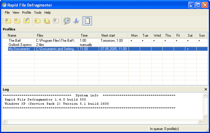 Посмотреть скриншот Rapid File DefragmentorRapid File Defragmentor предназначен для быстрого дефрагментирования заданных наборов файлов (profiles) на жестком диске. Это позволяет увеличить скорость доступа к данным и, как следствие, общую производительность системы.