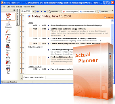 Actual Planner это мощный электронный органайзер. Actual Planner позволяет планировать задачи, формировать личное расписание дел, вести адресную книгу, делать записи в электронном дневнике и публиковать их в Интернете, а так же многое и многое другое. Actual Planner это программа для активных, целеустремленных и современных людей. Электронный органайзер - Actual Planner, предоставляет большие возможности контроля личного и рабочего времени, учета всех контактов в удобной адресной книге, написание кратких заметок в специальном разделе программы и т.д. Особой гордостью программы Actual Planner является возможность вести личный дневник. Но это не самое главное, Actual Planner – это отличный инструмент для ведения сетевого дневника – блога! Используя Actual Planner можно записывать интересные события из жизни, а после этого с легкостью публиковать записи в Интернете. Использовать Actual Planner действительно очень удобно. Все персональные данные (задачи, контакты, заметки, дневник) находятся в одном файле, который можно с легкостью сохранить и использовать дома и на рабочем компьютере. Используя только Actual Planner как минимум можно: - Записывать задачи, смотреть личное расписание дел на выбранную дату или используя встроенный календарь формировать последовательность выполнения задач на неделю, месяц или на сегодняшний день.