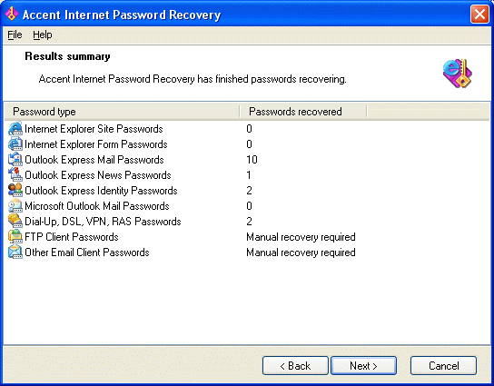 К счастью, здесь, в реальном мире мы научились эффективно решать подобные проблемы. Мы рекомендуем вам опробовать Accent Internet Password Recovery от AccentSoft. Это специализированная программа для восстановления паролей ко всем основным Internet приложениям на любом, доступном вам компьютере. Мы опробовали много подобных приложений и продукт от AccentSoft в топе. Программа поддерживает многие режимы работы. Программа имеет удобный интерфейс для быстрого и легкого восстановления и знает где стандартные Internet приложения (Internet Explorer, Outlook, Outlook Express, dial-up, DSL, VPN и RAS) сохраняют пароли и как их восстанавливать.