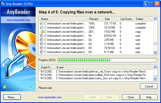 Эффективное средство для копирования файлов с нечитаемых CD/DVD-дисков, в том числе старых и поцарапанных, других поврежденных носителей (HDD, дискета), а также для копирования файлов по нестабильной сети LAN (Wi-Fi). Когда ваш компьютер не в состоянии корректно прочитать информацию с поврежденного участка диска, он прерыват копирование и удаляет уже скопированную часть файла. AnyReader уверенно читает поврежденные данные с любого вида носителей, даже если копирование стандартным способом не удалось. В программе есть возможность указать количество попыток, что позволит прочитать файлы с носителей с разной степенью поврежденности. Полное описание »