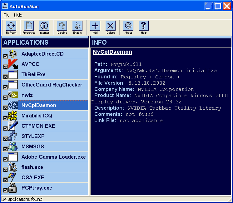 Autorunman это мощный и удобный менеджер программ, запускающихся автоматически при старте Windows. Autorunman производит поиск таких программ в системе и позволяет запрещать либо разрешать запуск этих программ одним щелчком мыши. Для того, чтобы пользователю было легче определиться с тем, что именно следует удалять, Autorunman извлекает из исполняемых файлов дополнительну. информацию. Можно посмотреть название компании-производителя, название и версию продукта, иконку программы и т.д. Если этой информации недостаточно, то можно воспользоваться кнопкой "Internet" для автоматического поиска дополнительной информации в Сети.