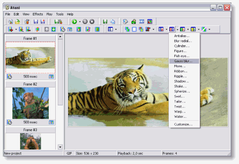 Быстрое и эффективное создание анимированных GIF и AVI по принципу всё в одном. Встроен редактор кадров. Имеется возможность масштабировать изображение, настраивать все параметры кадра, оптимизировать цветовую палитру, регулировать прозрачность, добавлять бегущую строку, а также захватывать экранную анимацию и сохранять отдельные кадры из AVI. Поддерживаются форматы BMP, JPG, GIF, PNG, ICO