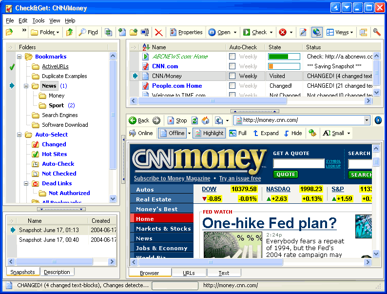 Занимаетесь ли Вы бизнесом и Вам необходимо знать изменения цен, опубликованных на сайтах Ваших конкурентов, студентом, ищущим в сети новые рефераты, или домашним пользователем, который следит за успехами своей любимой спортивной команды - Check&Get это средство для Вас!!!
