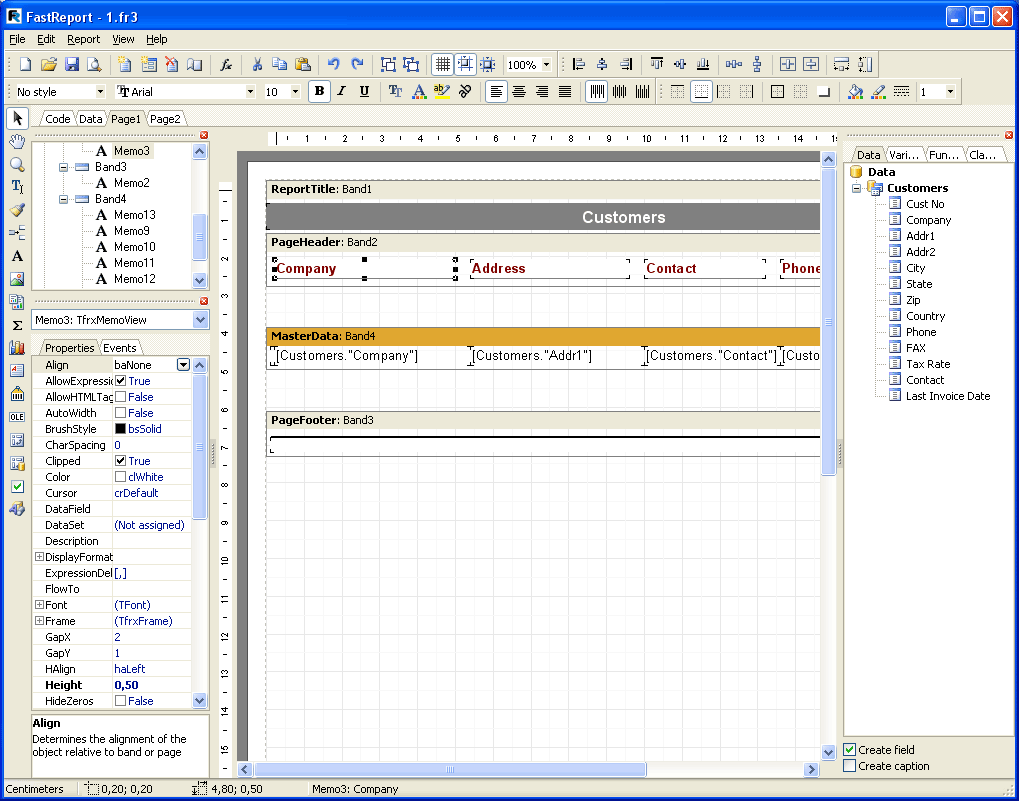 FastReport - это набор компонент для построения отчетов, представляет собой сочетание дизайнера, генератора и Preview отчетов. FastReport написан на 100% Object Pascal и может быть установлен в Borland Delphi 4-7, 2005 и C++Builder 4-6. Переработанная иерархия классов. Формат сохранения файлов - xml. Полный WYSIWYG (теперь и для текста). Текст под углом 0..360. Поддержка простых html-тэгов (font color, b, i, u, sub, sup) в объекте Memo. Улучшенное растягивание мемо-объектов (св-ва StretchMode и ShiftMode). Задание алиасов для таблиц и полей БД. Стили Перетекание текста Св-ва Cursor, URL у объектов отчета. Поддержка anchors. Построение отчетов для вывода на матричный принтер. Единый скрипт для всего отчета (как unit в Delphi). Новые обработчики событий для объектов отчета. Четыре скриптовых языка - PascalScript, C++Script, JSCript, BasicScript. Новые возможности (try/except, with, case и т.п.) Отладчик Улучшенный Object Inspector с поддержкой вложенных св-в. Масштабирование. Линейки, выносные линии. Редактирование мемо-объектов на месте. Инструменты "рука", "лупа", "текст". Бэнды, "прилипающие" друг к другу. Возможность отображать содержимое поля БД вместо его названия. Сетка-миллиметровка, дюймовка, с произвольным шагом, изменение левой/правой границ листа (объекты сдвигаются автоматически). Мастера для создания базовых типов отчетов. Копирование объектов в буфер обмена Windows. Полное Undo/Redo. Полное описание »