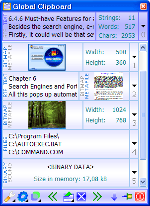 Global Clipboard позволяет легко и быстро заполнять формы, благодаря хранению списка необходимой информации, который постоянно перед глазами. Теперь вы можете видеть количество строк, слов и символов в скопированном тексте, а также размеры изображений и скриншотов. С помощью программы вы можете использовать буфер обмена для накопления текстов, копируемых из различных приложений.