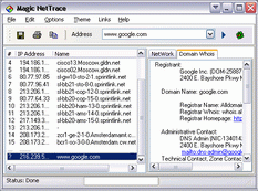 Определить количество хостов, пройденных для достижения цели, узнать маршрут движения пакетов, а так же время ответа от удаленного хоста. Magic NetTrace имеет интеграцию с ICQ Pro. Вы сможете получить ip адрес добавленного в контакт-лист человека, что позволит Вам легко узнать местонаходение вашего нового виртуального знакомого При установке программы