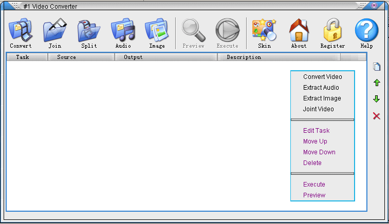 #1 Video Converter support AVI,MPEG1,MPEG2,VCD,DVD,ASF,WMV formats. #1 Video Converter Convert files between various format.#1 Video Converter join some small all supported format files to one,split large supported format file to smaller pieces, #1 Video Converter clip time freely while conversion and joint, batch files conversion, extract audio track to WAV,WMA,MP3 from all supported formats. #1 Video Converter support preview result before long time executing. Полное описание »