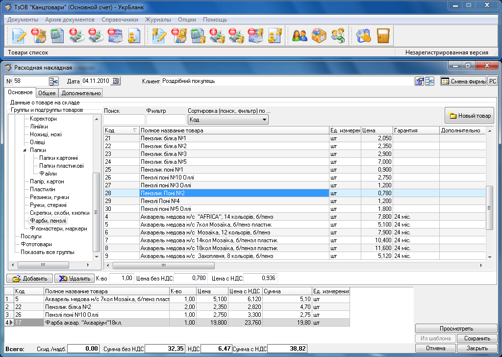 - Доработан контроль ввода одинаковых товаров, теперь при вводе нового товара можно контролировать товар по коду, по н