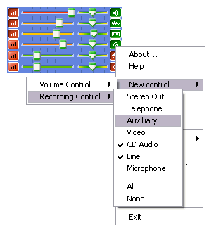 - каждый канал микшера звуковой карты регулируется в независимом окне;